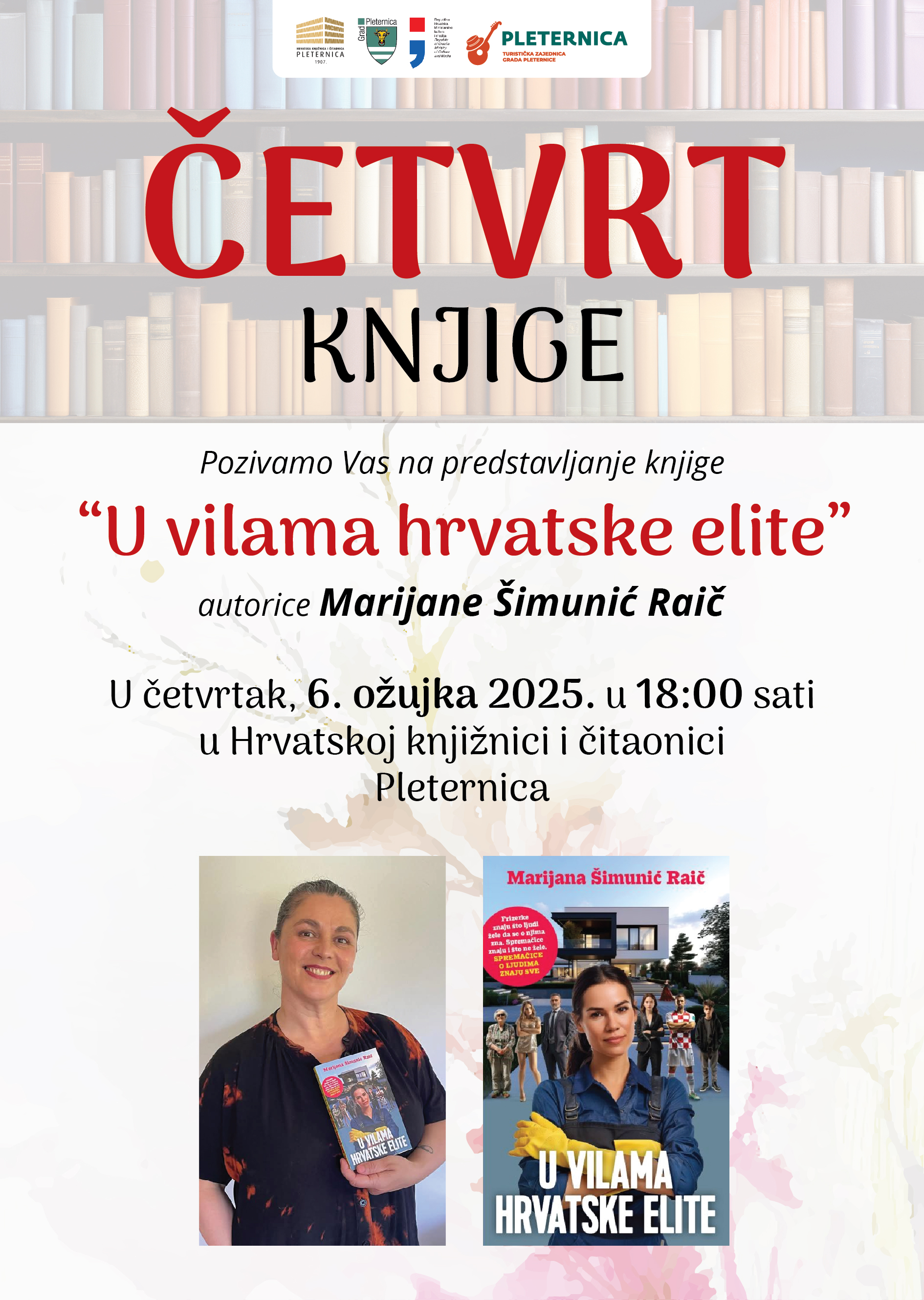 U sklopu projekta organizirali smo dva susreta s književnikom za djecu i dva za odrasle. Tijekom održavanja ''Tjedna za žene'' 6. ožujka 2025. održano je predstavljanje knjige ''U vilama hrvatske elite'' autorice Marijane Šimunić Raič. Sljedeća promocija knjige održana je za naše najmlađe korisnike. Knjižničarka i autorica Marija Gašparović 20. svibnja 2025. predstavila je slikovnicu ''Ogijev novi dom'', priču o malom pužu Ogiju, stanovniku Panonskog mora. Zadnji susret s autora za odrasle održan je 4. kolovoza 2025. kada je putopisac i frontmen grupe Cubismo Hrvoje Rupčić predstavio knjigu ''Putešestvije po Turkestanu''. Autor je publici putem fotografija, videa i glazbe predstavio čari Kazahstana, Kirgistana, Tadžikistana i Uzbekistana.